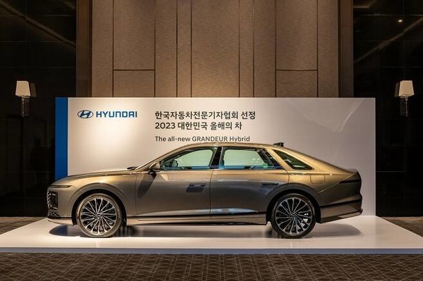현대자동차 친환경 플래그십 세단 7세대 그랜저 하이브리드가 한국자동차전문기자협회 주관 '2023 올해의 차'에서 최고의 상을 받는 영예를 안았다.