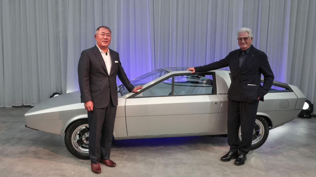 현대차 포니 쿠페 콘셉트는 쐐기 모양의 노즈와 원형의 헤드램프, 기하학적 선으로 최초 공개 당시 세계의 주목을 받았다. 복원 모델 공개 현장에는 주지아로 외에도 이충구 전 현대차 사장을 비롯해 포니 콘셉트 개발에 크게 기여한 디자이너들과 엔지니어들이 함께해 그 의미를 더했다.
