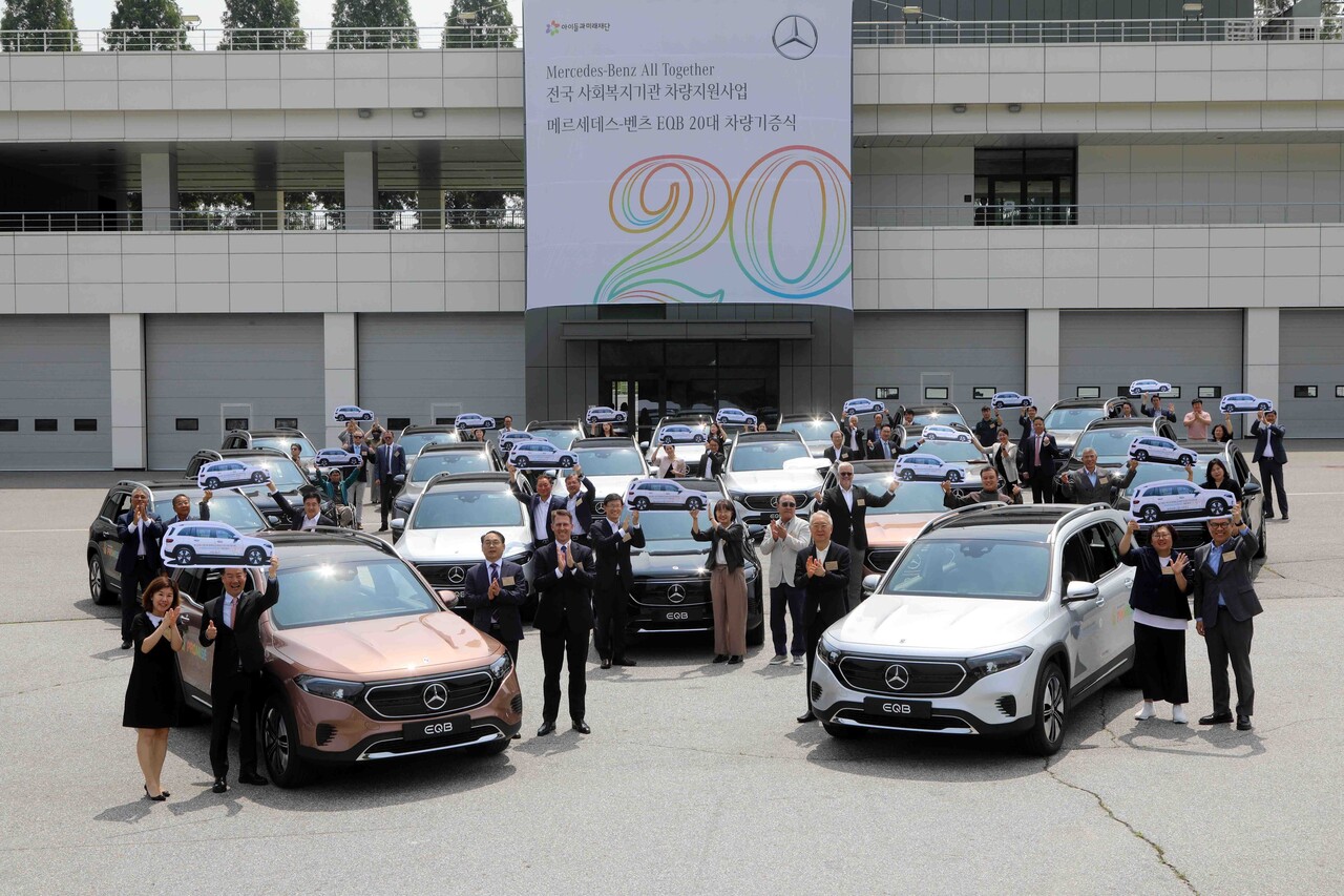 메르세데스-벤츠 사회공헌위원회와 사회복지법인 아이들과미래재단는 지난 19일 경기도 용인시 AMG 스피드웨이에서 차량 기증식을 열고 전국 20개 사회복지기관에 전기 SUV EQB 20대를 전달했다고 밝혔다.