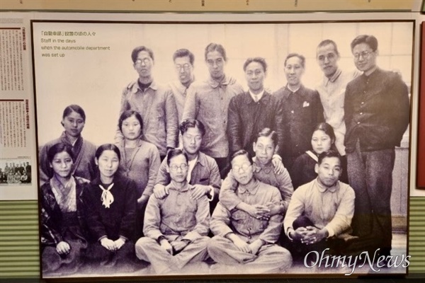 요리야스 부관장은 "기이치로는 1933년에 회사 내부에 별도의 자동차 부서를 만들었다"면서 "초기 15~17명으로 구성된 직원들은 오후 5시이후부터 비밀리에 지엠 쉐보레 등을 분해하면서 연구에 전념했다"고 설명했다. 기념관에 전시돼 있는 초기 자동차부의 연구원 사진에는 여성 5명이 포함돼 있었다. 요리야스 부관장은 "자동차 설계와 제작과정에서 여성들의 섬세함은 매우 중요한 요소"라며 "이들은 뛰어난 방직기술을 바탕으로 (자동차) 설계 작업에 참여한 것으로 안다"고 말했다.