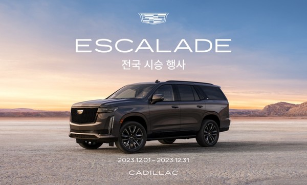 이번 에스컬레이드 전국시승 이벤트는 12월 1일부터 31일까지 진행한다. 참가를 원하는 고객들은 캐딜락 공식 홈페이지 혹은 전국 캐딜락 전시장을 통해 신청할 수 있다.
