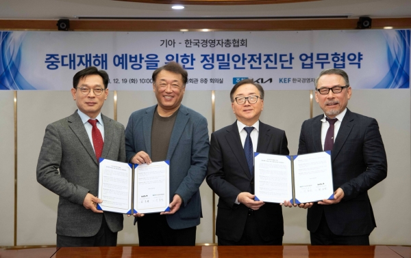 기아는 19일 서울시 마포구 소재 한국경영자총협회관에서 안전한 사업장 조성을 위해 한국경영자총협회와 '중대재해 예방을 위한 정밀안전진단 업무협약(MOU)'을 체결했다고 밝혔다. 협약식에는 최준영 기아 대표이사, 이동근 경총 상근부회장, 류경희 고용노동부 산업안전보건본부장, 한병호 한국교통대 교수 등이 참석했다.