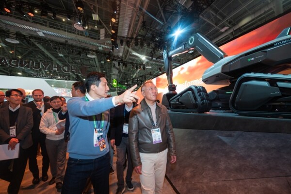 정의선 회장은 9일(현지시간) 오전 미국 라스베이거스 컨벤션 센터(LVCC) 웨스트홀에 마련된 HD현대 전시관을 방문해 정기선 부회장과 만났다.